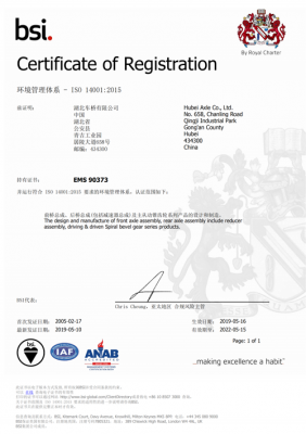 • 湖北車橋有限公司排污許可證申報(bào)已...